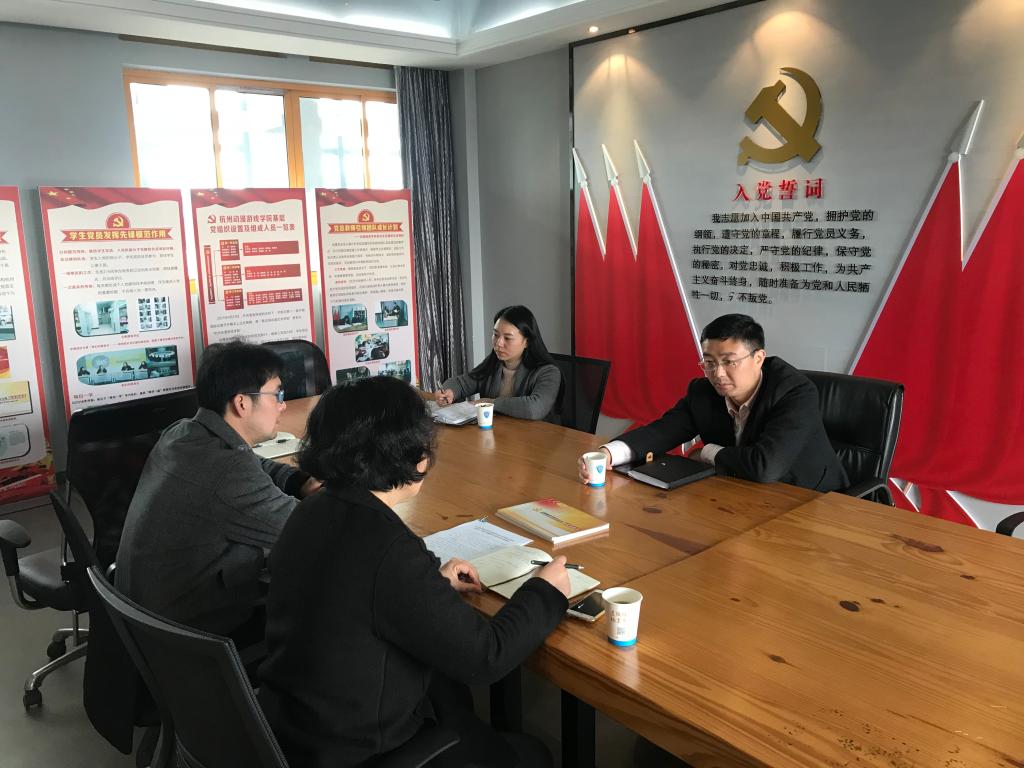 3月25日下午,校纪委书记沈威、校纪委办公室副主任韩丹来到动漫游戏学院、彩虹鱼康复护理学院,开展二级学院“清廉杭职”推进工作建设研讨,党总支书记茅千里、副书记郭捷、组织委员杨叶青等参与研讨。