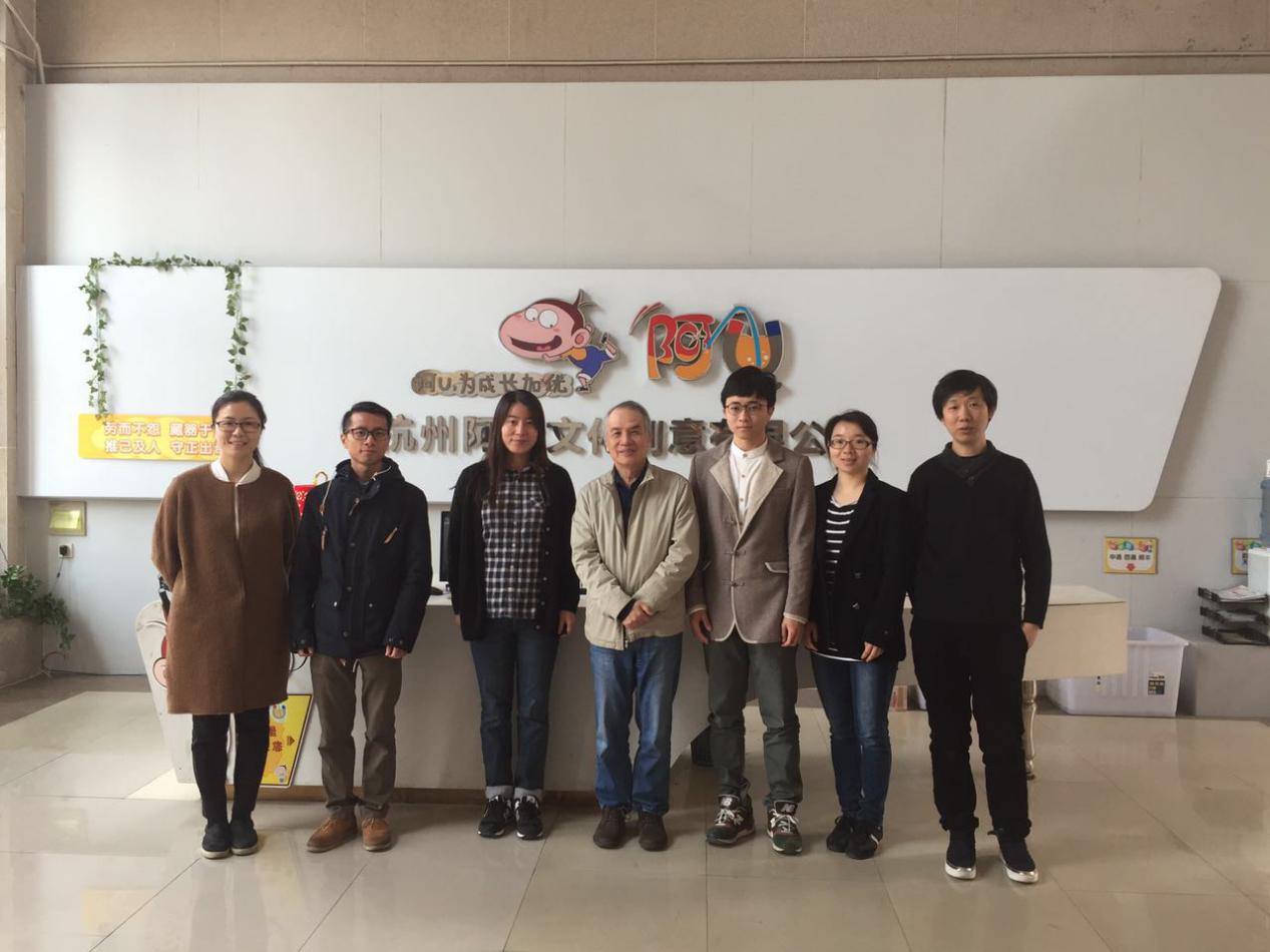 3月4日上午,动漫游戏学院动漫设计专业专家指导委员会主任(北京电影学院动画学院)曹小卉副院长、动漫游戏学院副院长黄璐一行5人前往浙江省创意园,专题调研杭州阿优文化创意有限公司。