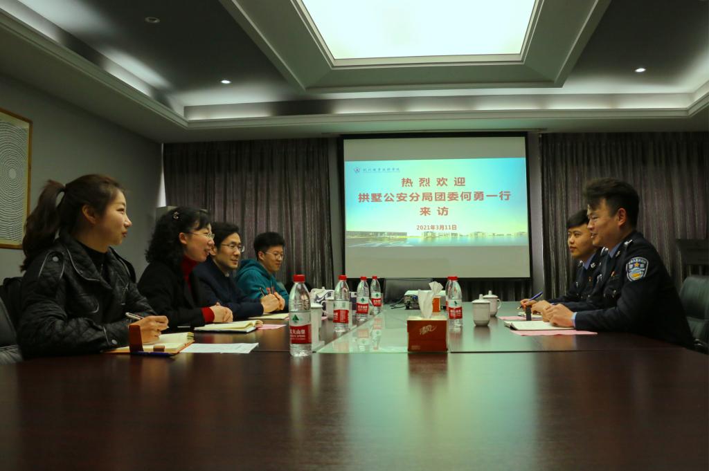 3月11日,杭州市公安局拱墅区分局团委书记何勇一行来访动漫游戏学院,分院党总支书记沈音乐、副书记副院长郭捷、团总支负责人杨叶青参与接待,就院警共建一事开展洽谈。