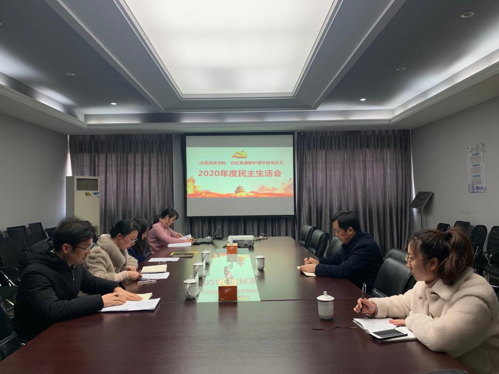 1月11日下午,动漫游戏学院、彩虹鱼康复护理学院党总支在4307会议室召开2020年度党员领导干部民主生活会。学校党委书记金波,动漫游戏学院、彩虹鱼康复护理学院党总支书记沈音乐、副院长黄璐、党总支副书记副院长郭捷参加会议。