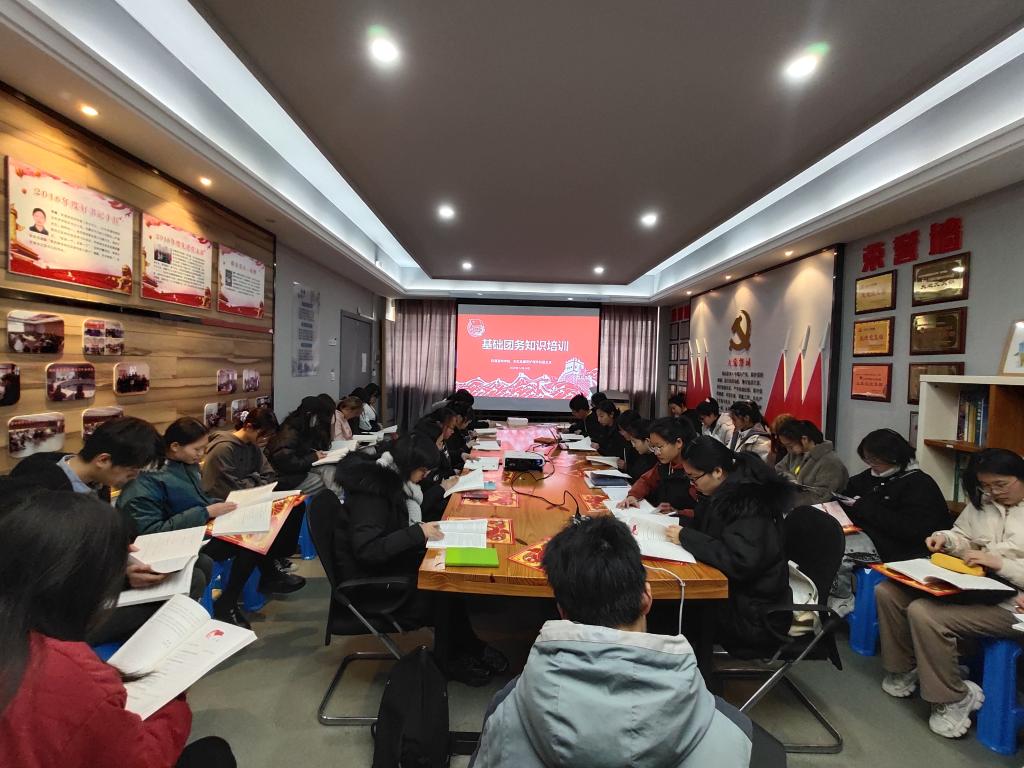 为进一步加强团的基层组织建设,筑牢团学骨干思想根基和业务能力,12月24日中午,动漫游戏学院、彩虹鱼康复护理学院团总支组织开展基础团务知识专题党课,团总支负责人杨叶青和全体团支书参加。