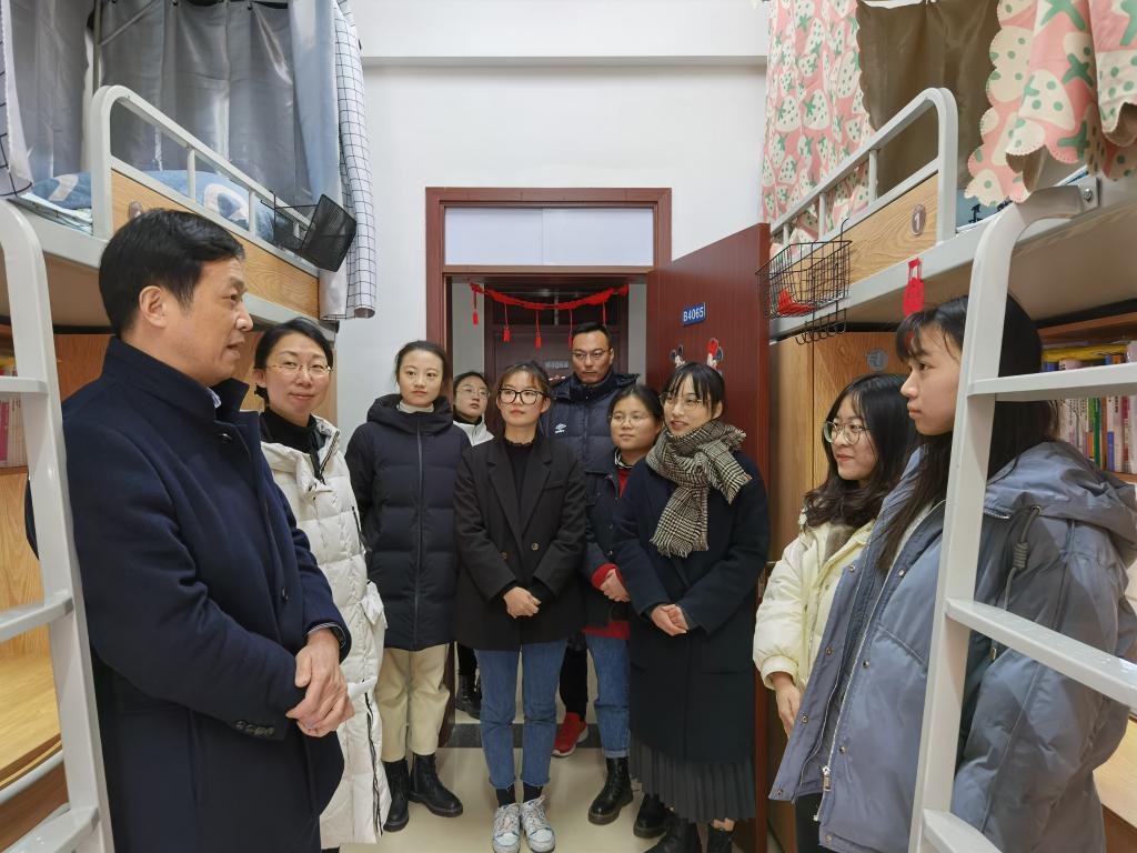 1月7日中午,校党委书记金波在学生食堂与同学们共进午餐,走进学生寝室,深入了解学生在校学习生活情况和需求,对学生们普遍关心、关注的学校发展与自身发展问题进行交流解答。