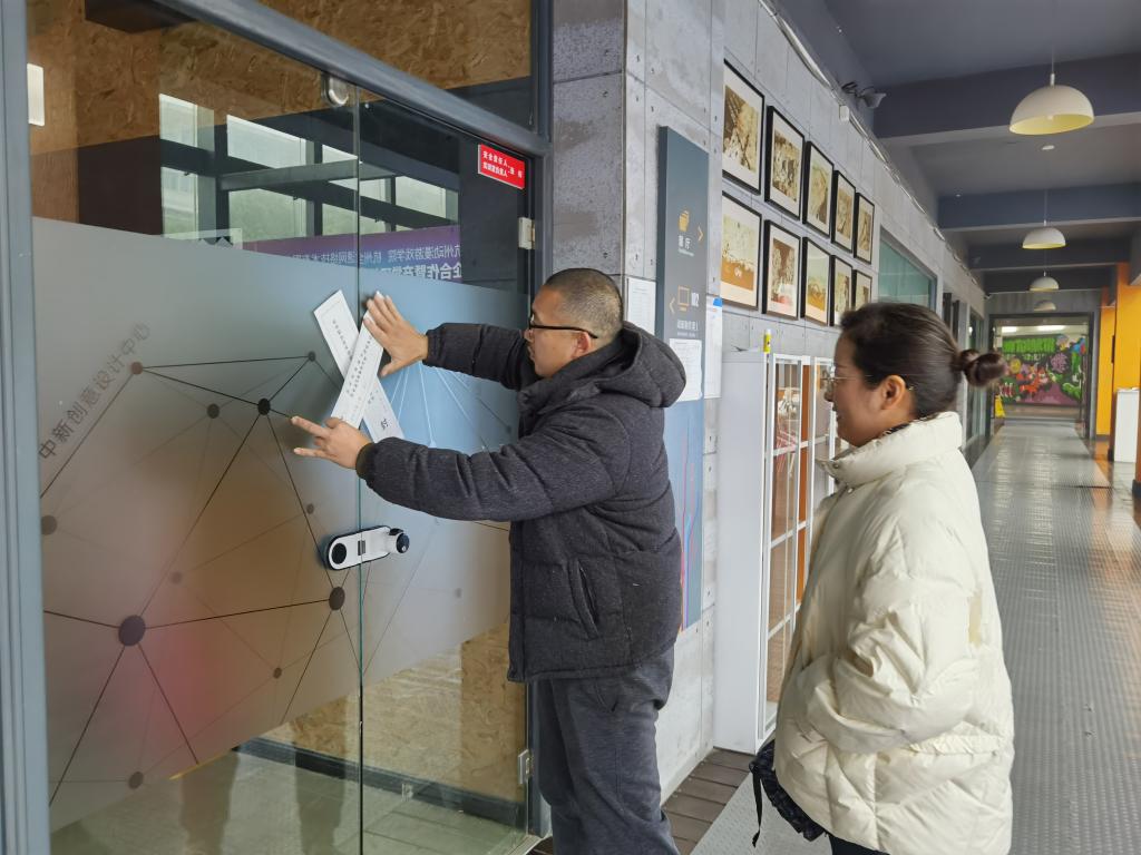在各部门,沈音乐一行询问老师们近期工作安排,强调节日期间的安全问题,叮嘱大家要提高自身的安全意识,尤其是做好疫情防控。随后,各专业组、教科办、综合办、学工办均做好内部检查,在教室、机房、办公室等场所张贴封条。