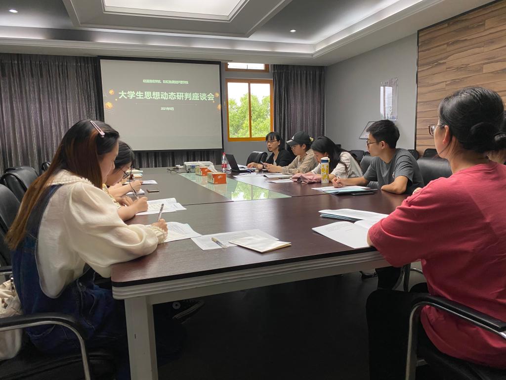 5月17日中午,动漫游戏学院、彩虹鱼康复护理学院在4307会议室召开本学期第二次大学生思想动态研判座谈会。学工办主任许智颖、各年级学生代表参加了本次座谈。