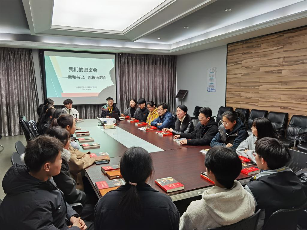 1月6日下午,动漫游戏学院、彩虹鱼康复护理学院第八期“我们的圆桌会——我与书记、书记面对面”活动在4307举行。学院党总支书记沈音乐,党总支副书记、副院长郭捷、团总支负责人及20余名学生代表参与本次活动。