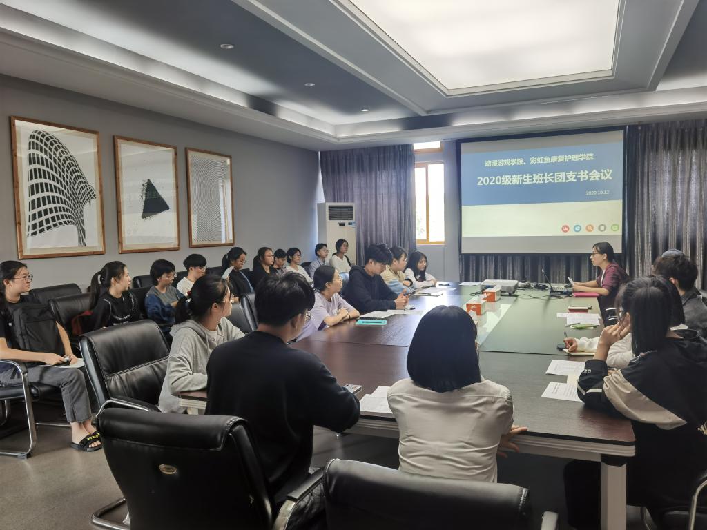 10月12日,动漫游戏学院、彩虹鱼康复护理学院召开新生班长团支书会议。学工办主任许智颖、辅导员和2020级各班班长、团支书参加了本次会议。