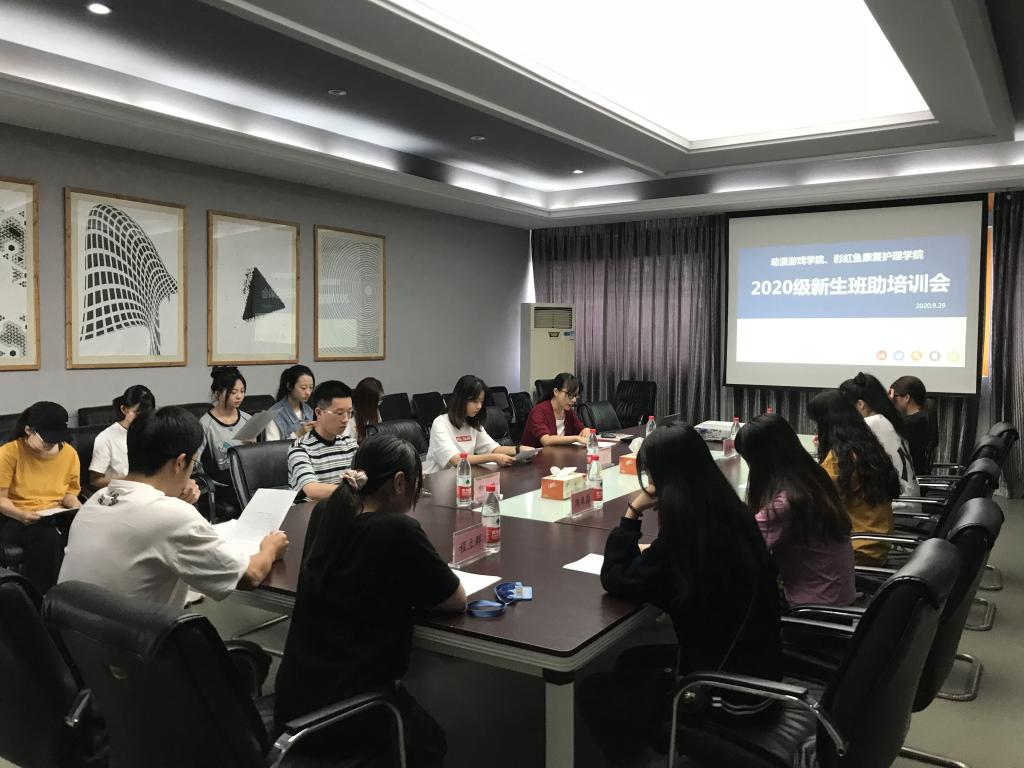 为保障学院迎新工作顺利开展,9月29日下午,动漫游戏学院、彩虹鱼康复护理学院在4307会议室召开2020级新生班助培训会,学工办主任许智颖及2020级15名班助参加会议。