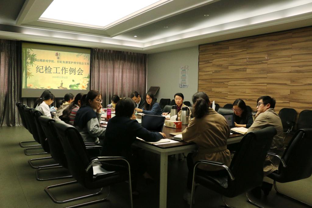 11月2日下午,动漫游戏学院、彩虹鱼康复护理学院在307会议室召开纪检工作例会。分院党政领导班子、全体中层干部、党支部书记参加会议。会议由党总支副书记、总支纪检委员郭捷主持。
