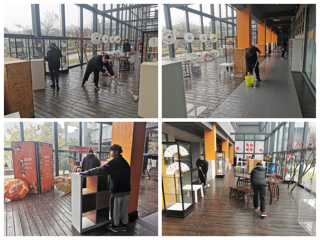 12月11日,值扫的新生来到动漫学院一楼大厅。领取值扫工具后,同学们热火朝天的干了起来。擦窗、拖地、清洁展柜,大家互帮互助,每一个环节都一丝不苟的完成。在他们的劳动下,一个干净整洁展厅很快呈现在我们眼前。