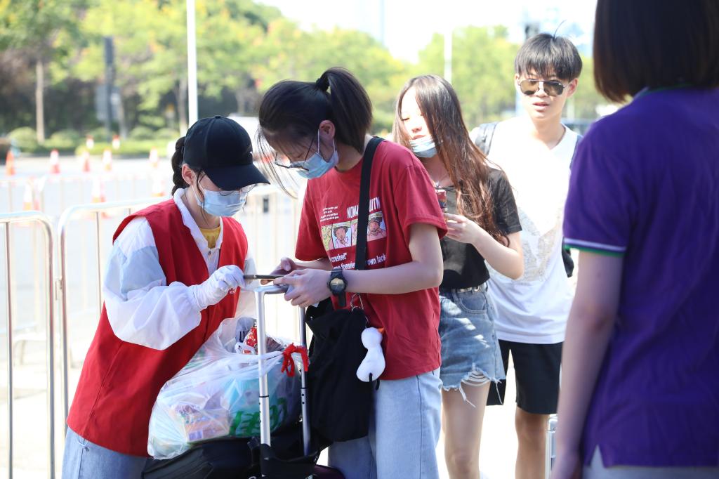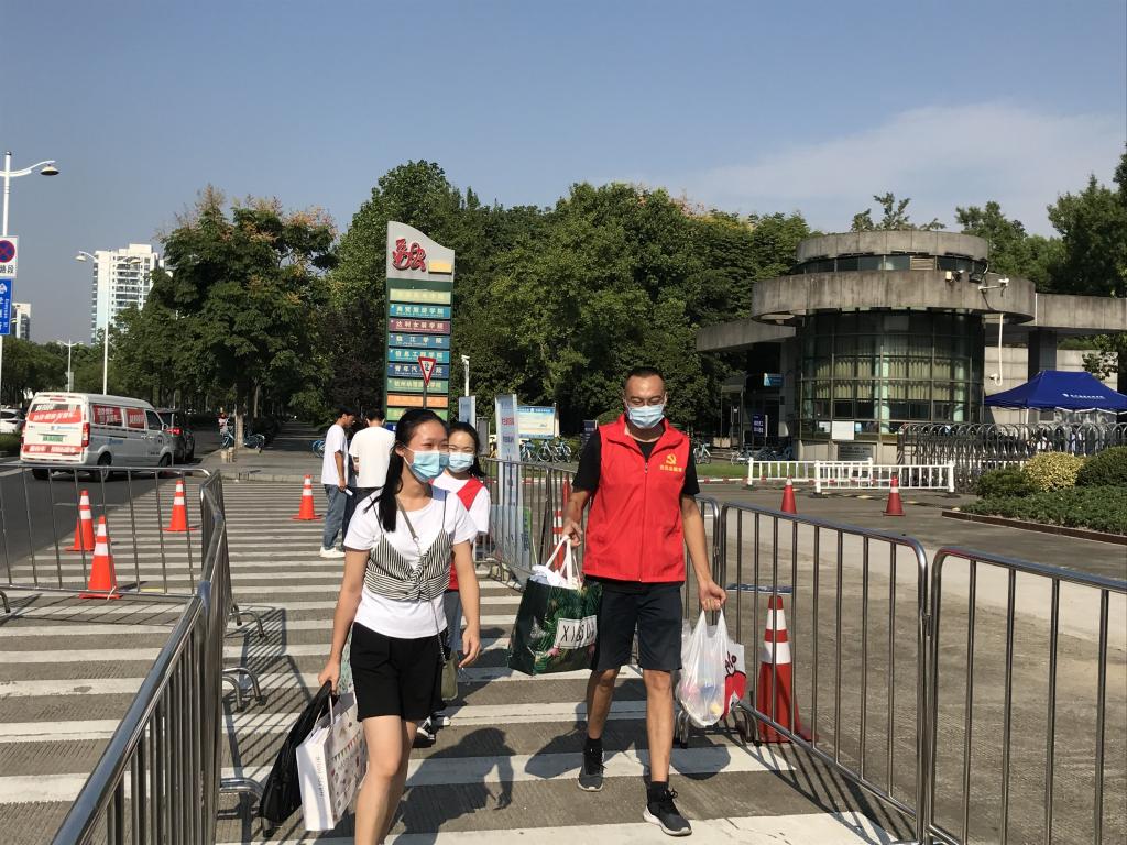 志愿者们在老生返校前认真学习工作要求,熟悉工作流程,在返校的第一时间便投入到志愿服务中,在校南大门、含晖苑公寓大门帮助学院学生顺利返校,助力护航学生返校的师生志愿者在志愿服务过程中各司其职、通力合作,为学生平安返校“保驾护航”。