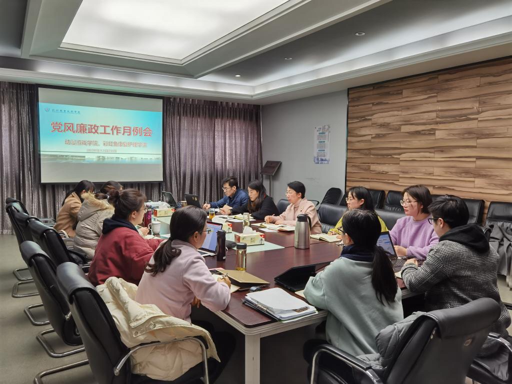 12月21日下午,动漫游戏学院、彩虹鱼康复护理学院在307会议室召开纪检工作月例会。分院党政领导班子、全体中层干部、党支部书记参加会议。会议由党总支副书记、总支纪检委员郭捷主持。