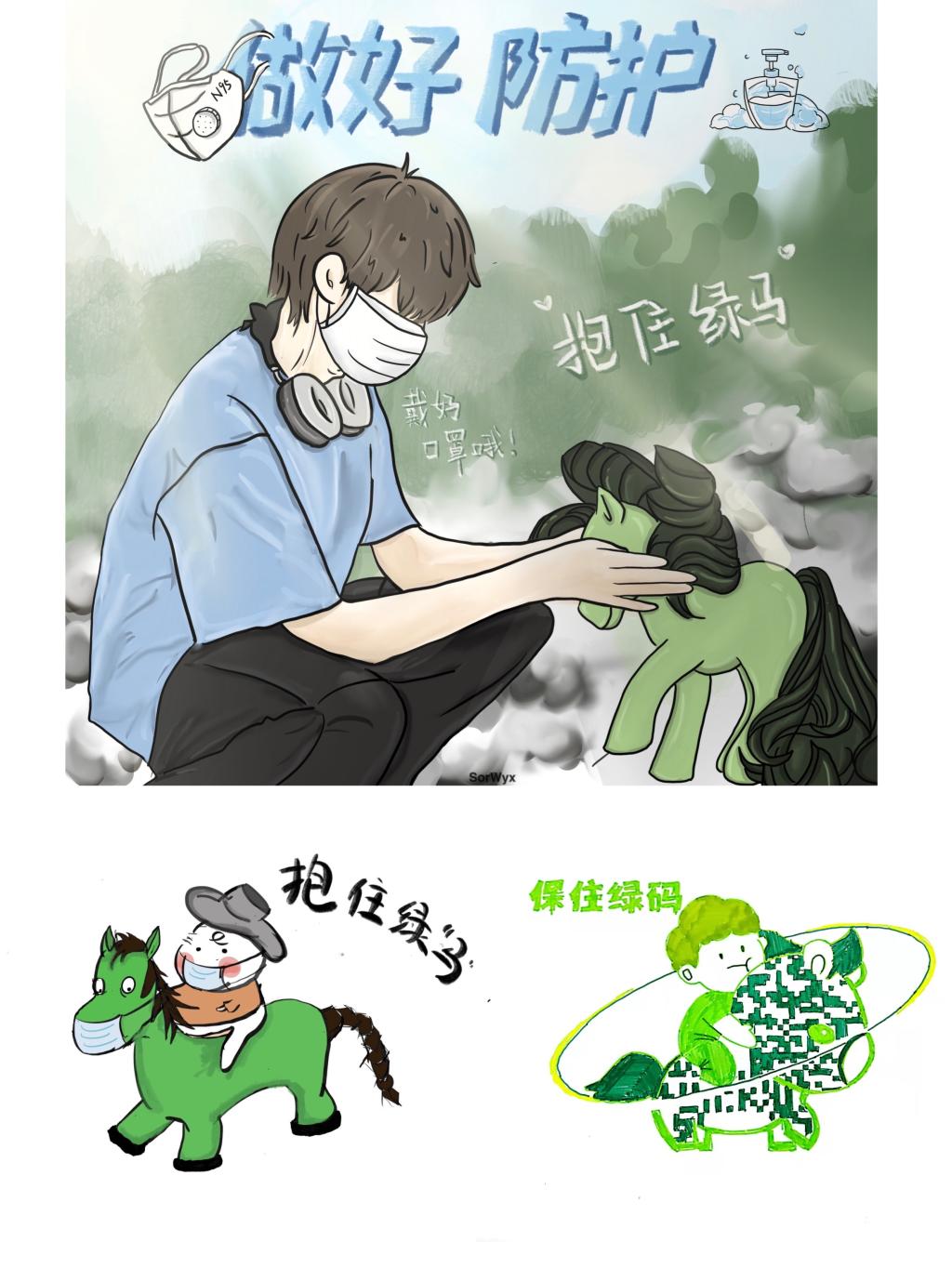 活动期间,同学们拿起手中的画笔,用奇思妙想将人人保卫的“健康码”跃然纸上,大家希望通过艺术表达传递“重视疫情,平安出行”。活动受到同学们的积极响应,目前,已收到十余幅作品。参与本次活动的同学表示:“希望通过这次活动,播下绿‘马’的种子,为校园安全贡献着自己的一份力量。”