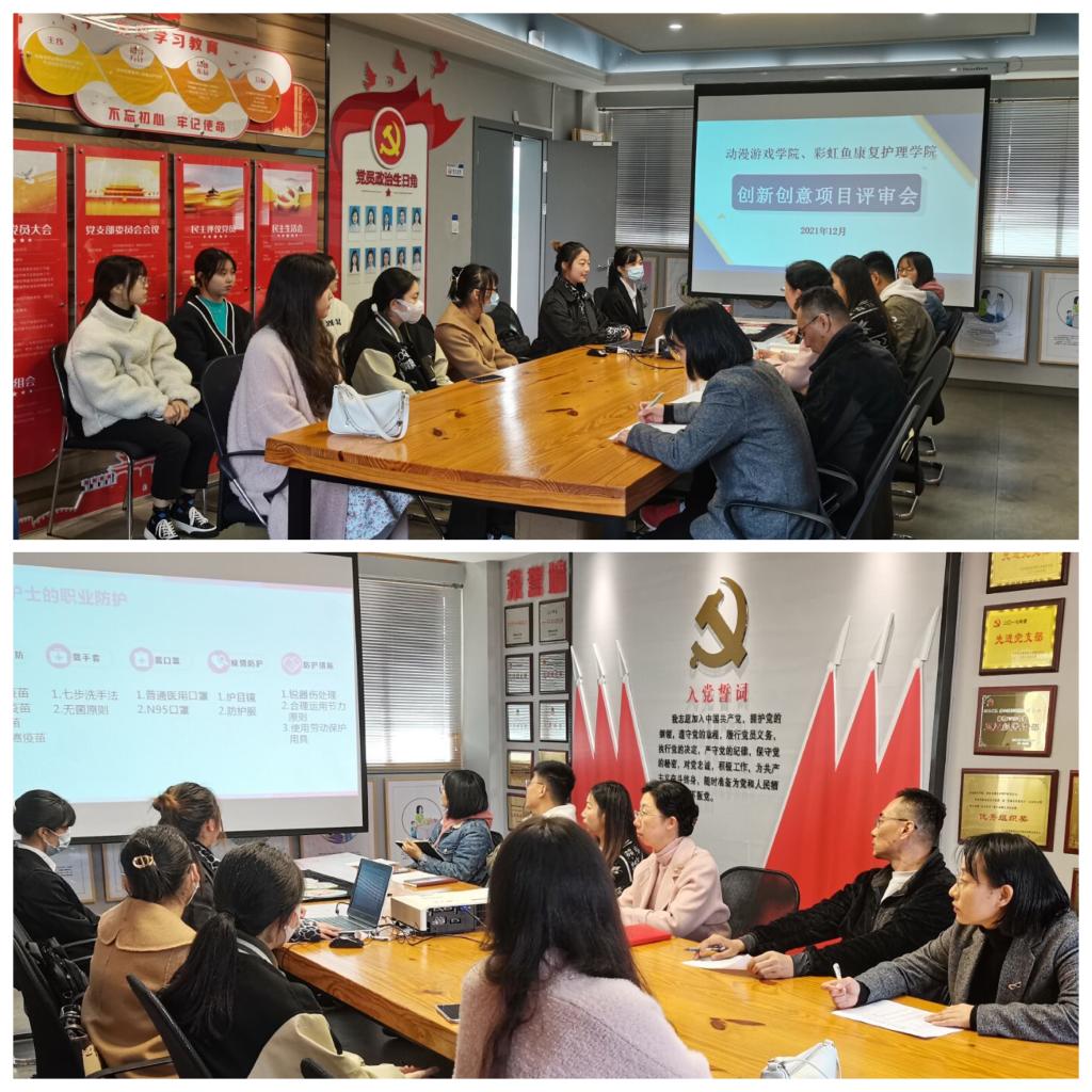 12月9日下午,动漫游戏学院、彩虹鱼康复护理学院在306会议室,举行2021年创新创意项目评审会。党总支书记沈音乐、学工办主任许智颖、全体辅导员和13位项目负责人参加了会议。