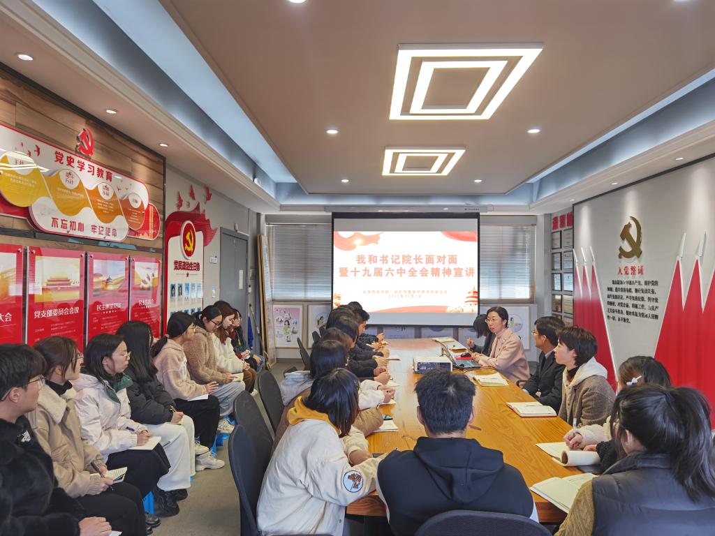 为深入学习宣传党的十九届六中全会精神,引领我院青年学子砥砺初心、奋勇前行,12月1日,动漫游戏学院、彩虹鱼康复护理学院在4306党员之家组织开展我和书记院长面对面暨十九届六中全会精神宣讲活动。党总支书记沈音乐,副书记、副院长郭捷与20名学生代表一同参与。