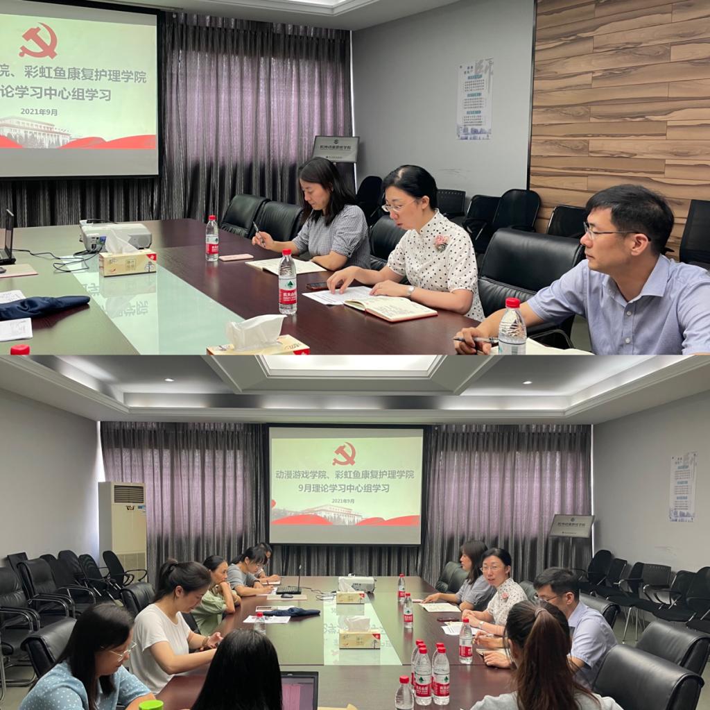 9月29日下午,动漫游戏学院、彩虹鱼康复护理学院理论学习中心组在4307会议室召开9月学习会议,专题学习袁家军书记在高校党建工作座谈会上的讲话精神。分院党政领导班子成员、全体中层干部和党总支委员参加了学习。会议由党总支书记沈音乐主持。