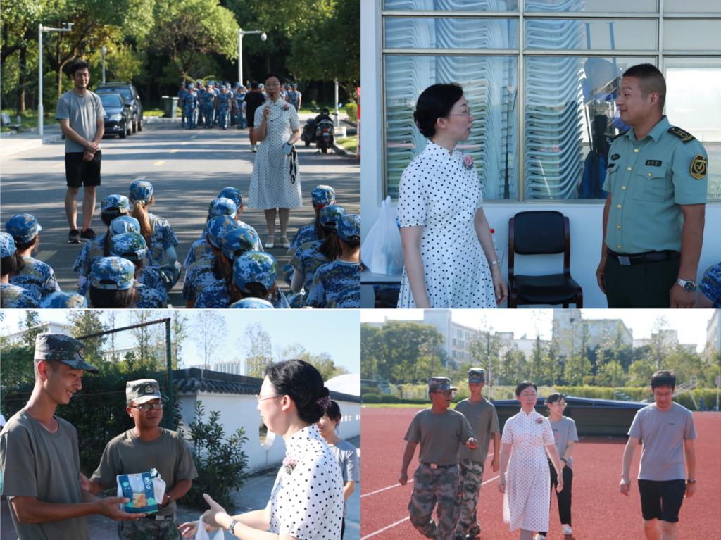 随后,分院领导班子在营长带领下,观看了新生军训情况。党总支书记沈音乐对新生们在烈日下仍保持良好的精神风貌,进行了高度赞扬。希望他们能够在接下来的训练中,继续磨练自己的意志,增强自己的体魄,圆满完成军训任务。最后,她代表分院全体师生,向坚持训练的全体新生和教官们传达了诚挚的中秋节祝福!