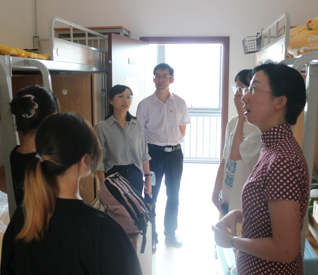 丹桂飘香,又是一年迎新时。为进一步了解新生入住情况,帮助新生尽快适应大学生活,9月16日中午,动漫游戏学院、彩虹鱼康复护理学院党总支书记沈音乐,副书记、副院长郭捷,学工办主任许智颖及辅导员郭常娟一同走访2021级新生寝室。