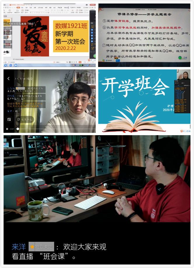 2月21日-22日,动漫游戏学院、彩虹鱼康复护理学院千余名师生通过微信平台,在线举行了开学典礼;各班级在学工办的组织下,召开了开学“云”班会。