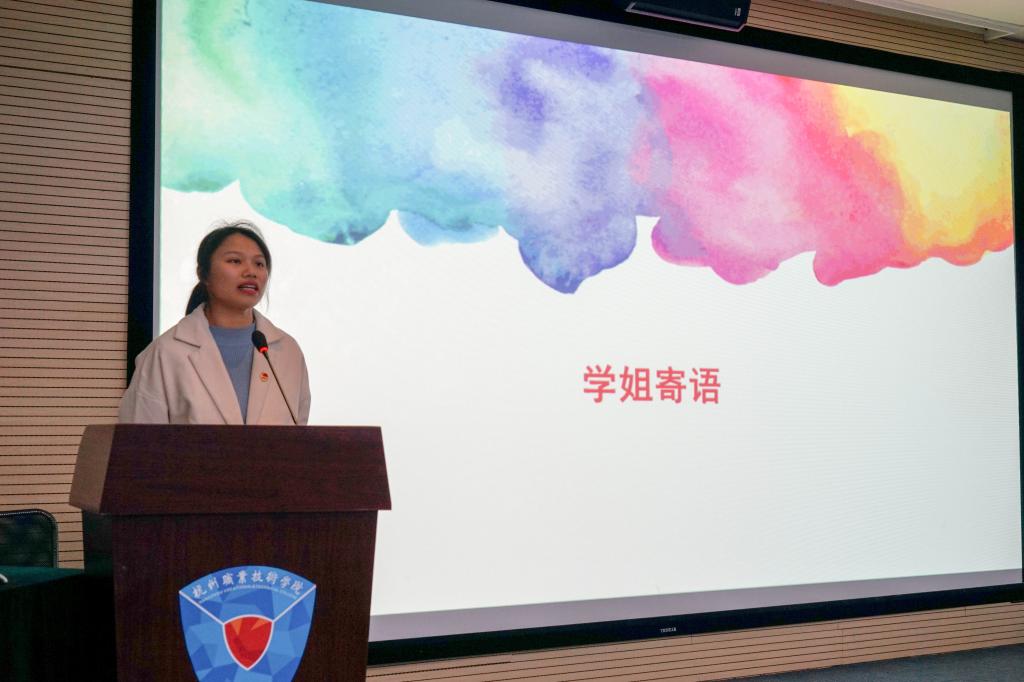 本届学生会招募了40余名2019级新生,在经历两个月的试用期后正式成为学生会的一员。在宣读新一届学生会名单后,上届学生会主席陈舒分享了工作心得,她回顾自己在学生会一年来的工作,有迷茫也有憧憬,但是更多的是成长。她告诉在场同学加入学生会这个大家庭是一种荣誉,更是一种责任,希望在场的同学们要把工作做细、做实。随后,团总支副书记杨叶青寄语新生,希望学生会成员能认清自己的角色和定位,努力做好服务者、传递者和管理者的工作,切实做到服务同学、联系师生、提升自我,并在学生会工作过程中加强团结协作,主动分担,有所收获、有所成长。