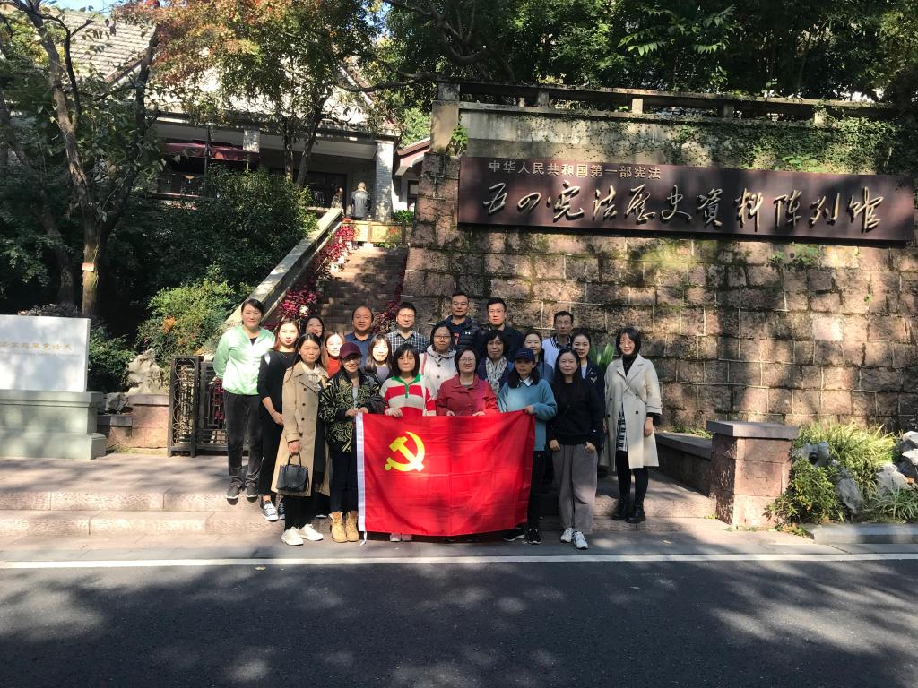 “五四宪法”历史资料陈列馆北山街馆是毛泽东主席在杭州起草新中国第一部宪法时的办公地,全体党员在场馆志愿者的引导下,先后参观了为序厅、复原陈列和主题陈列三大展区,通过观看视频、图片、实物等资料,深入学习了“五四”宪法的诞生历程和深远影响。