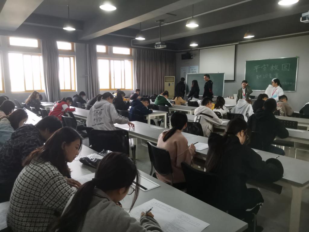本次“平安校园”安全知识竞赛经过班级初赛后,共有150余名同学参加学院复赛。学院复赛试题内容全面、综合性强,涉及到大学生活中的交通安全、宿舍用电安全、消防安全、财产安全、人身安全、饮食安全、自救互救等知识。复赛过程中选手们冷静思考,专心答题,思路清晰,自信应对,灵活应用自身扎实的安全基础知识。答题结束时同学们都有条不紊地上交自己的答卷。经过激烈角逐,丁苗苗等17名同学脱颖而出,将代表分院参加校级决赛。