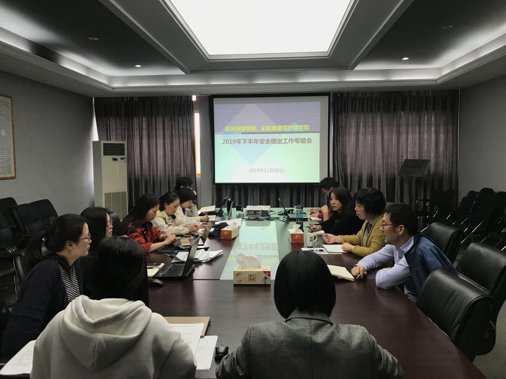 11月4日下午,动漫游戏学院、彩虹鱼康复护理学院在4307会议室召开2019年下半年安全稳定工作专题会议。学院党总支书记茅千里、副院长黄璐、副书记副院长郭捷及全体中层参加会议。