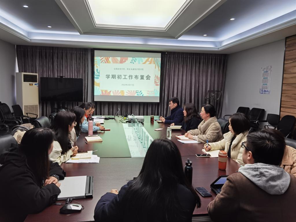 2月17日下午,动漫游戏学院、彩虹鱼康复护理学院在4307会议室召开学期初工作布置会,分院班子成员、全体中层干部参会。