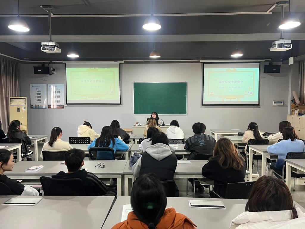 为推进动漫游戏学院、彩虹鱼康复护理学院评奖评优工作顺利进行,2月28日中午,分院学工办在4403召开学生评奖评优专题培训会。会议由辅导员姚洁莹主讲,2021级班长、团支书等主要学生干部参会。