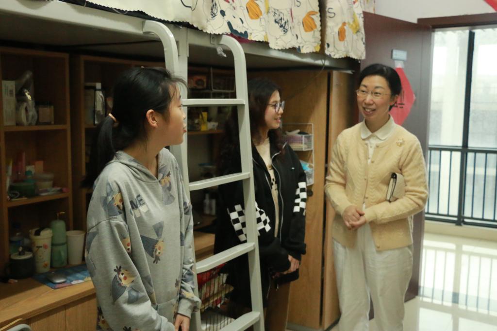 走访过程中,沈音乐与学生们进行了亲切交谈,详细了解了学生的专业学习与日常生活情况,叮嘱同学们要严格遵守疫情防控期间校园管理要求,做好个人防护,注意用电安全,遇到困难及时与老师联系沟通,并勉励同学们厚植家国情怀,勤奋学习、积极向上,以更加饱满的精神面貌不断砥砺奋进。
