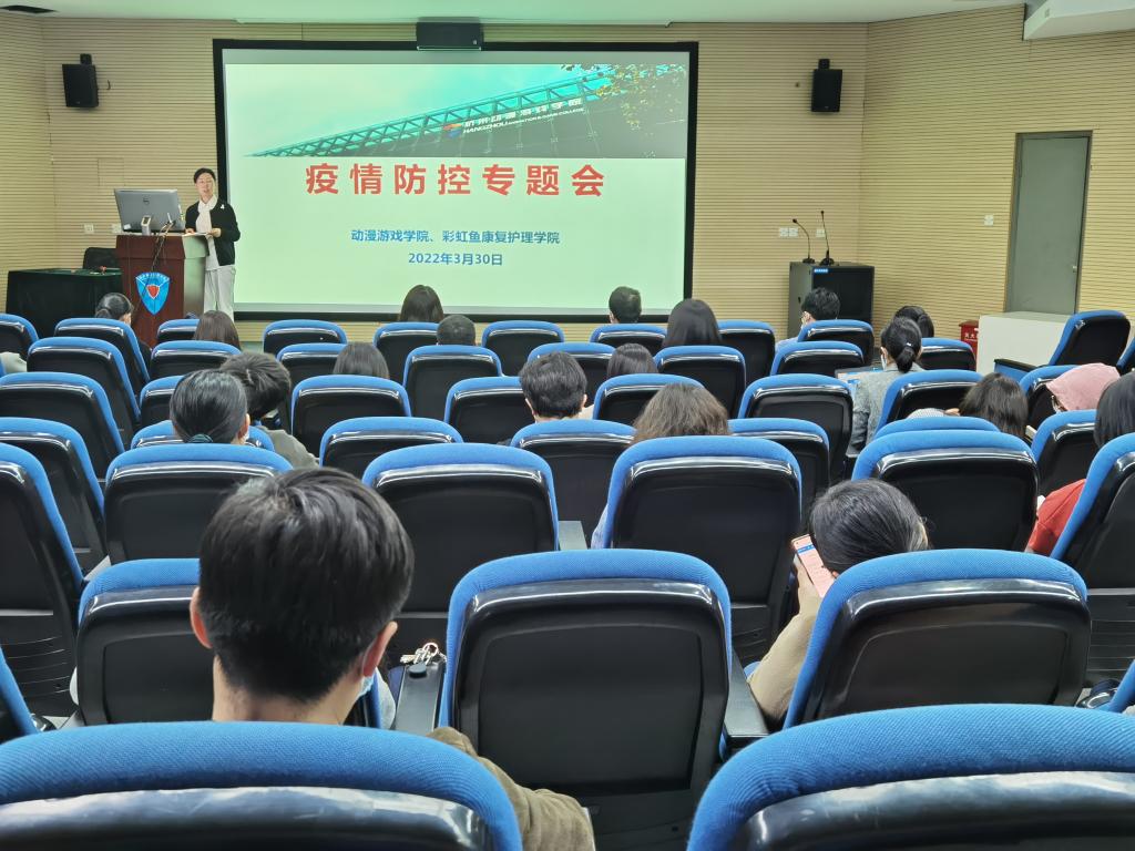 3月30日,动漫游戏学院、彩虹鱼康复护理学院在动漫楼201召开疫情防控专题会议。会议由学院党总支书记沈音乐主持,全体教职工参加会议。