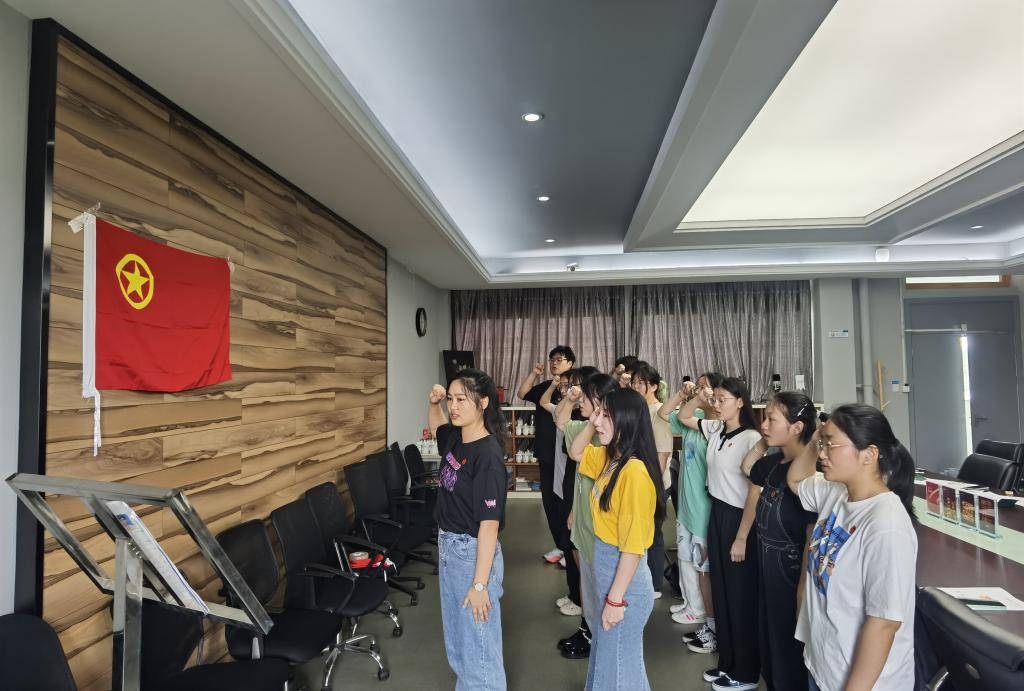 6月21日中午,动漫彩虹鱼学院团总支在4307举行2022年上半年新团员入团宣誓活动,14名新团员光荣地加入中国共青团,分院团总支负责人杨叶青参加,组织部负责人王怡同学领誓。