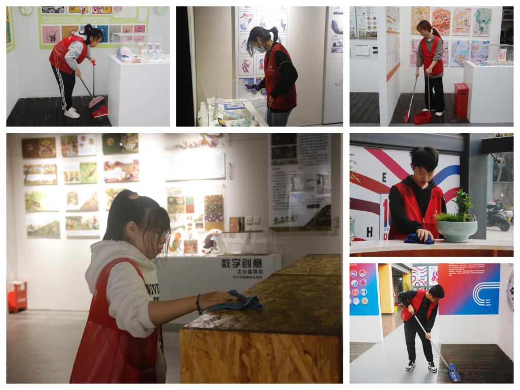 下午一点半,参加值扫的学生在动漫一楼展厅集合,辅导员郑建杰对每个人的负责区域和工作职责进行了划分。同学们拿起打扫工具来到自己的场地,积极投身到本次劳动实践中。扫地、拖地、擦玻璃......大家活力满满,展现出动漫学子积极向上的精神面貌。在同学们的共同努力下,学院一楼焕然一新。