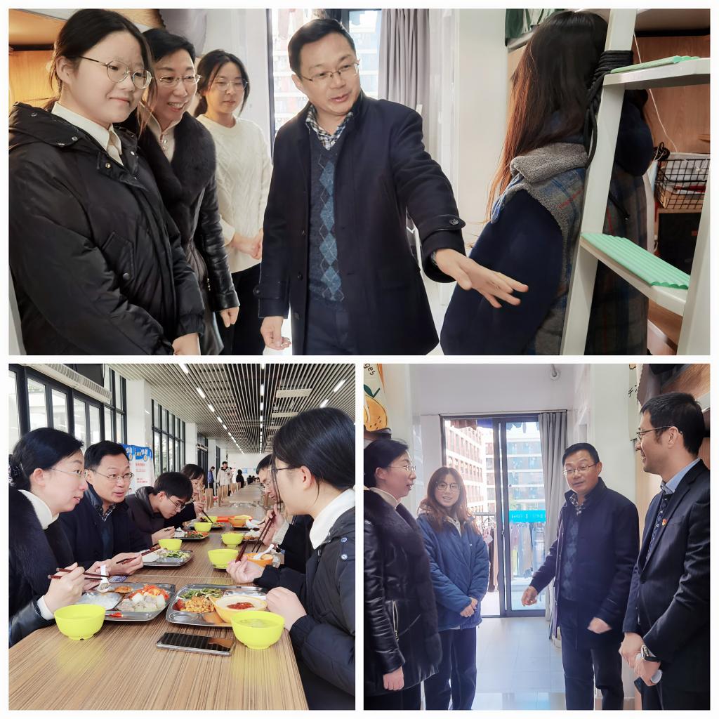 12月6日中午,副校级领导张洪宪在动漫游戏学院党总支书记沈音乐、副书记副院长郭捷陪同下,与同学们共进午餐,走访寝室,深入了解学生在校学习生活情况和需求,关心学生发展和成长。