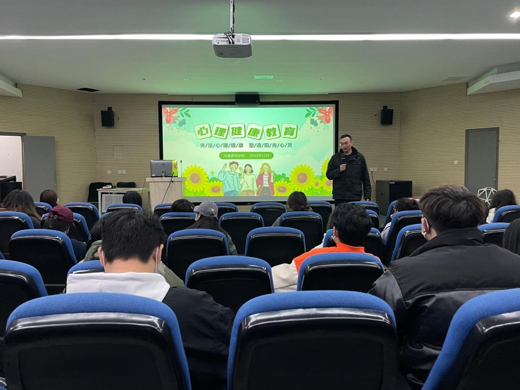 为深入推进疫情防控期间学校心理健康教育工作,提高学院心理健康教育工作的创新性和实效性,构建和谐平安校园,动漫游戏学院于12月12日晚,在学院4201视听讲堂举办主题为“关注心理健康,塑造阳光心灵”的心理健康教育讲座,大一和大二的学生干部参加了本次活动。