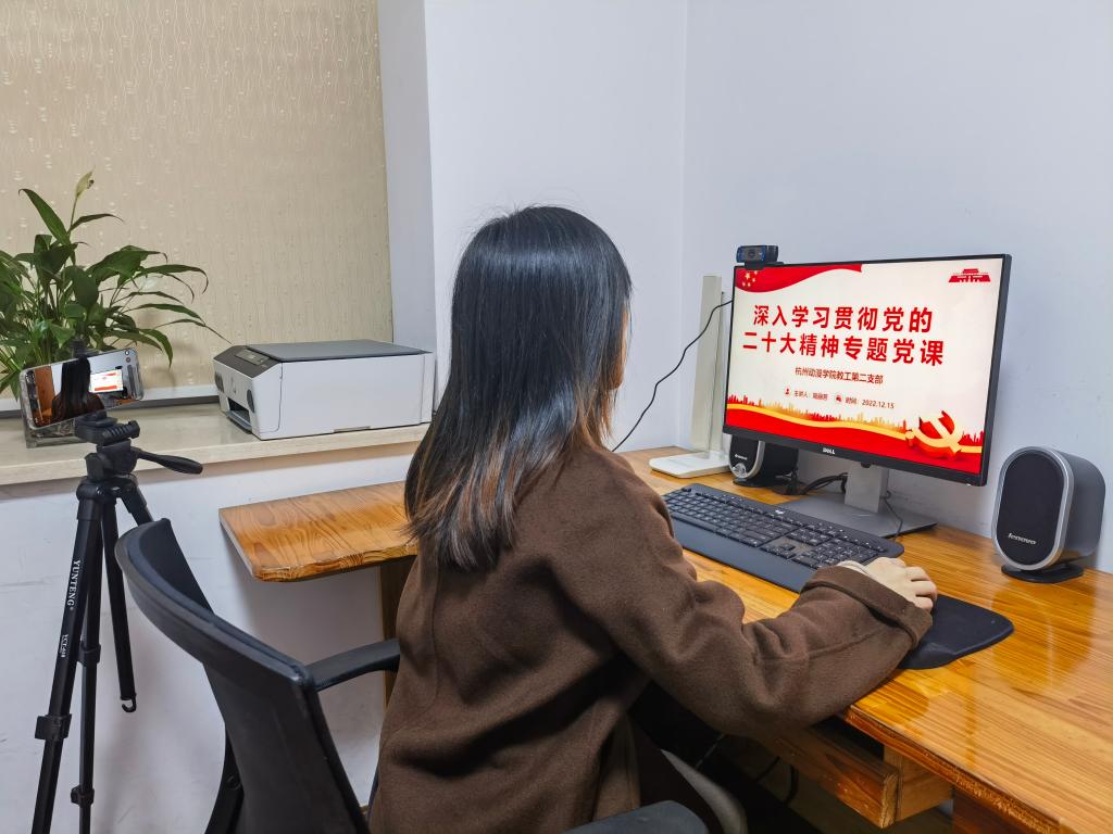 为深入学习贯彻党的二十大精神,充分发挥党支部战斗堡垒作用,12月15日晚,动漫游戏学院第二党支部组织开展“践行以艺铸魂,助力专业发展,落实立德树人的根本任务”主题党日活动,本次活动采取钉钉平台与西湖先锋平台同步进行的形式,全体党员通过线上学习交流,回觅党员初心使命。