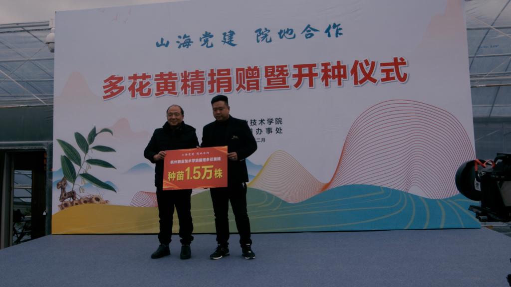 一年之际在于春,春耕春种正当时。2月7日,杭州职业技术学院联合莲都区紫金街道在美丽的杨坑村开展送科技及种苗下乡活动,正式启动大棚杨梅林下套种多花黄精复合高效种植模式,举办了“山海党建”“院地合作”多花黄精捐赠开种仪式。