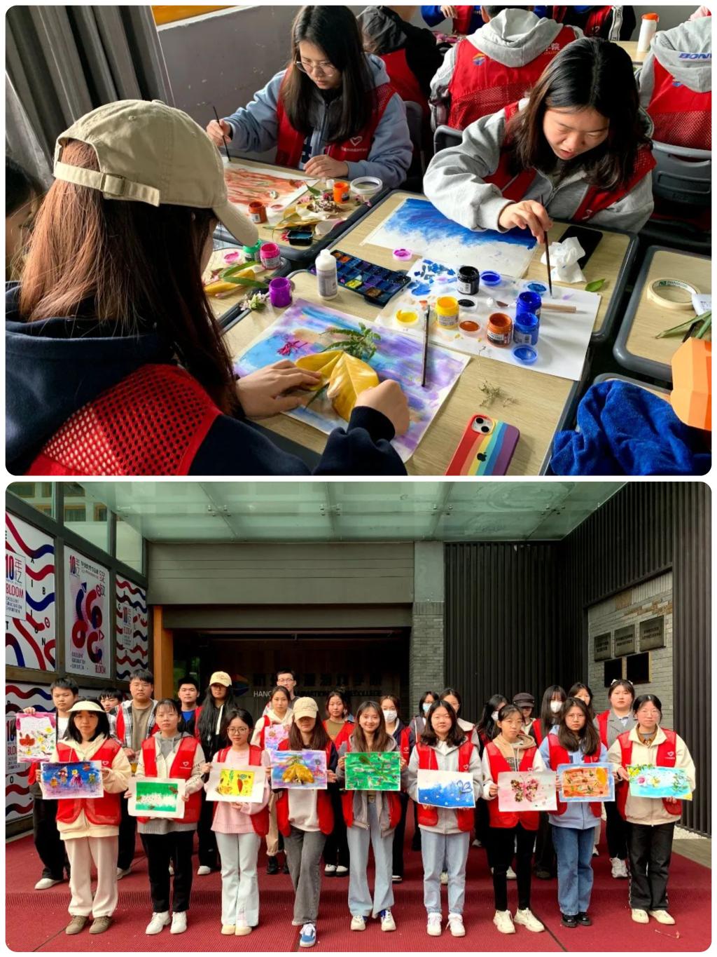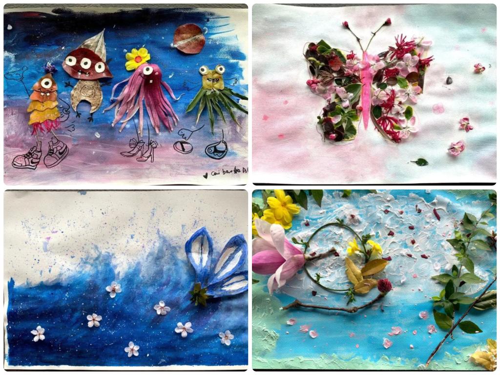 活动前,同学们先拾取了校园里的落花落叶,通过丰富的想象力,拼贴创作丙烯植物标本画,用自己的创意为春天增添一幅幅环保画卷。鲜艳的色彩,精心的搭配,画作笔触精到,着墨巧妙,作品栩栩如生,给人身临其境之感,在感受艺术的同时展现了同学们的创新与表现能力,每一幅画都传递着保护环境、变废为宝的理念。