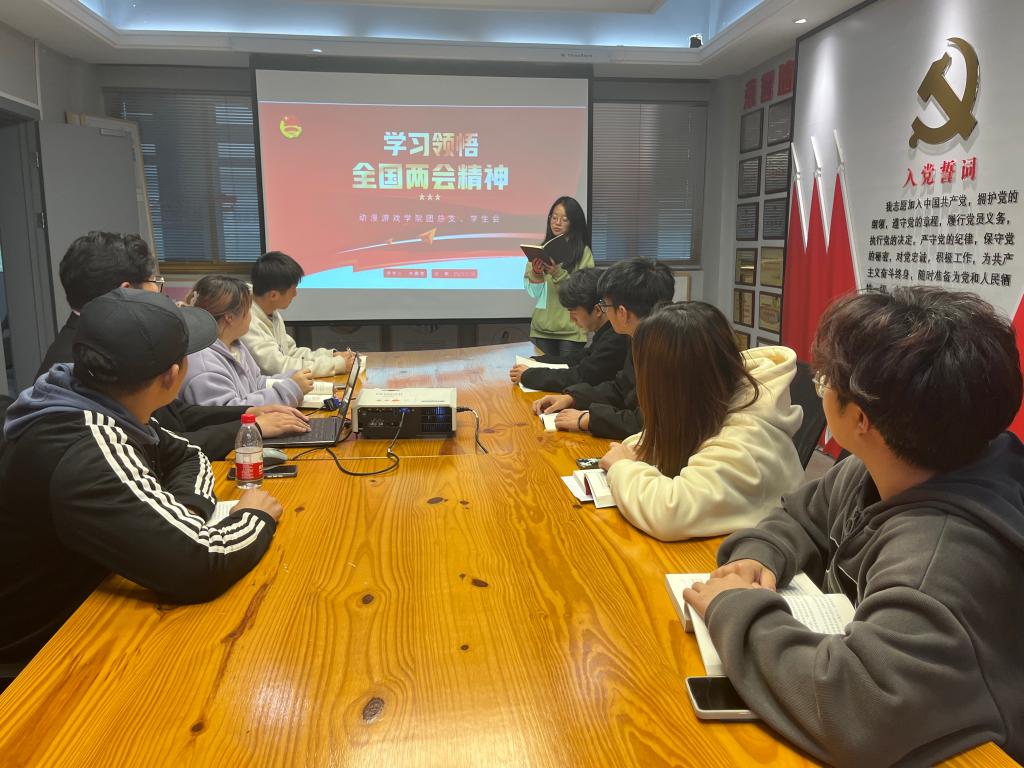 为深入学习贯彻全国两会精神,统一思想、凝聚共识、激发动力,3月16日,动漫游戏学院团总支、学生会在4306会议室集体学习第十四届全国人大一次会议精神,深入领会习近平总书记的重要讲话。本次学习由院学生会执行主席朱嘉雯同学领学。