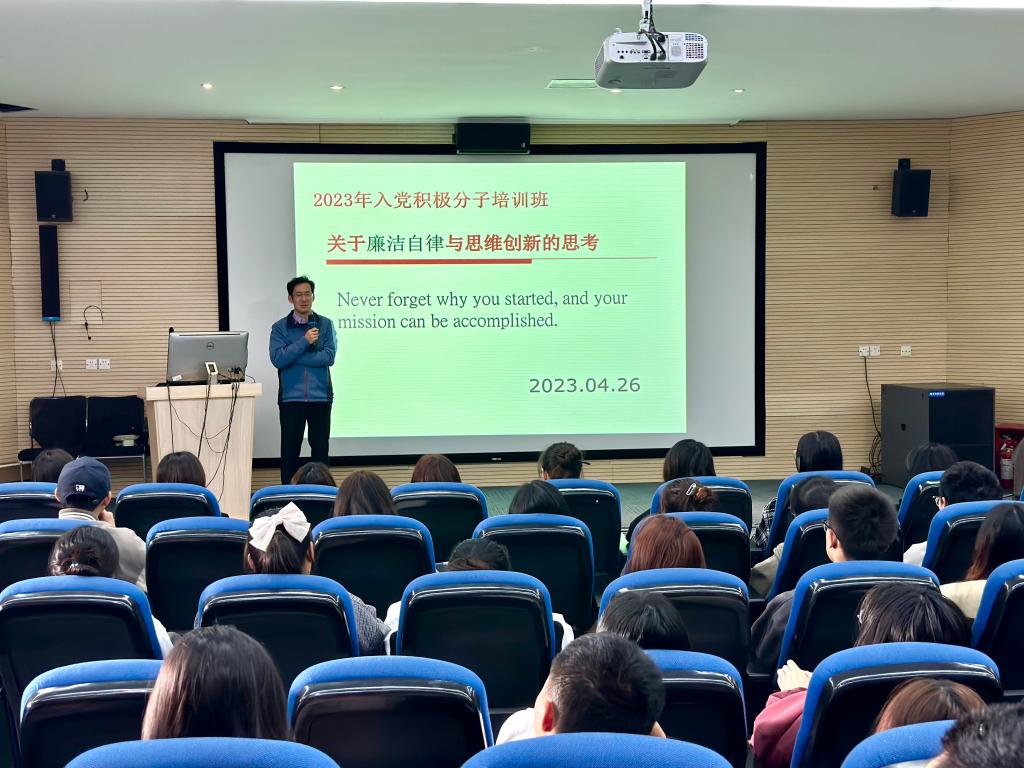 为贯彻落实党的二十大精神,从源头上严把党员发展“入口关”,进一步加固发展党员“蓄水池”,提高入党积极分子思想觉悟,4月26日下午,动漫游戏学院党总支副书记郭捷在动漫楼201视听教室为学院2023年入党积极分子讲授清廉党课。