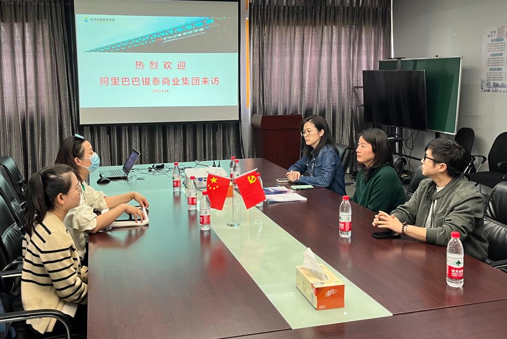 4月26日下午,阿里巴巴银泰商业集团一行来访动漫游戏学院,副院长(主持工作)黄璐、数字媒体艺术设计专业负责人王启宾、动漫设计专业负责人施丽娜等接待并座谈。