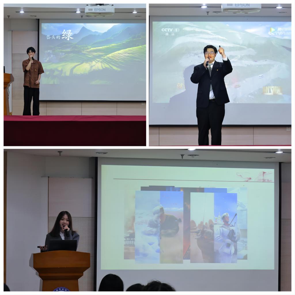 活动伊始,园艺2222班顾佳媛、插漫2121班叶成、数漫2121班孙陈柯三位同学,分别围绕坚定守护“红色根脉”,讲好红色教育故事、忠实践行“八八战略”,讲好发展成就故事、奋力唱响“我在窗口写青春”,讲好青春奉献故事三大主题进行展演,以微课、情景剧等形式,展现了动漫学子踔厉奋发的斗志、昂扬向上的精神。