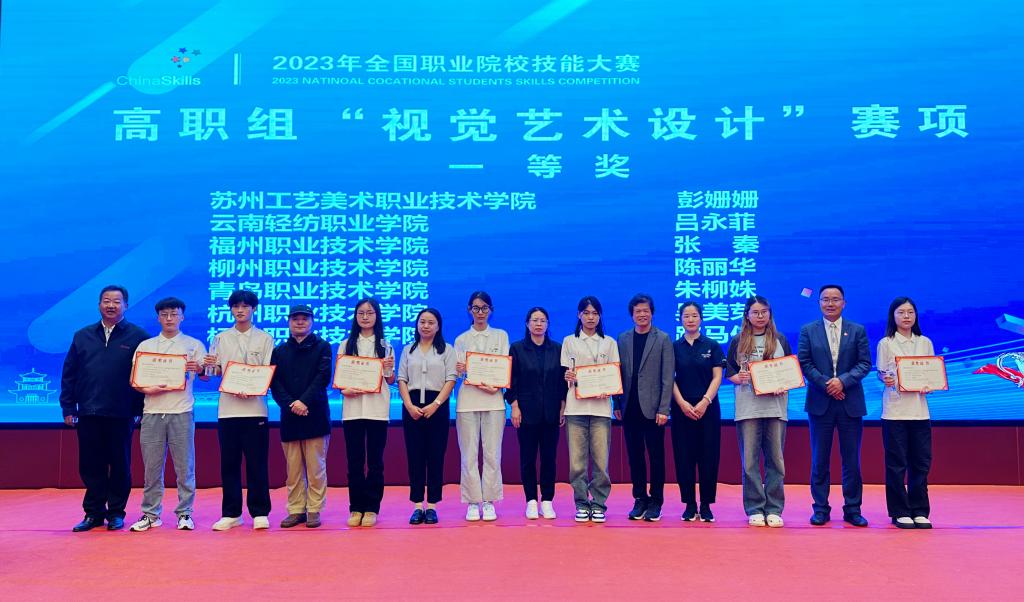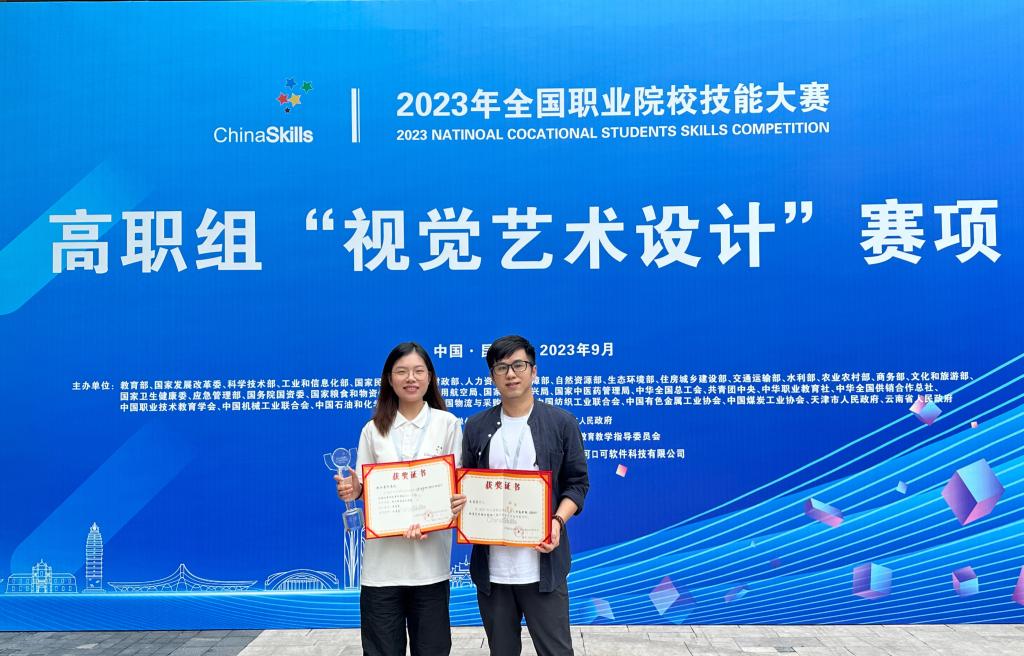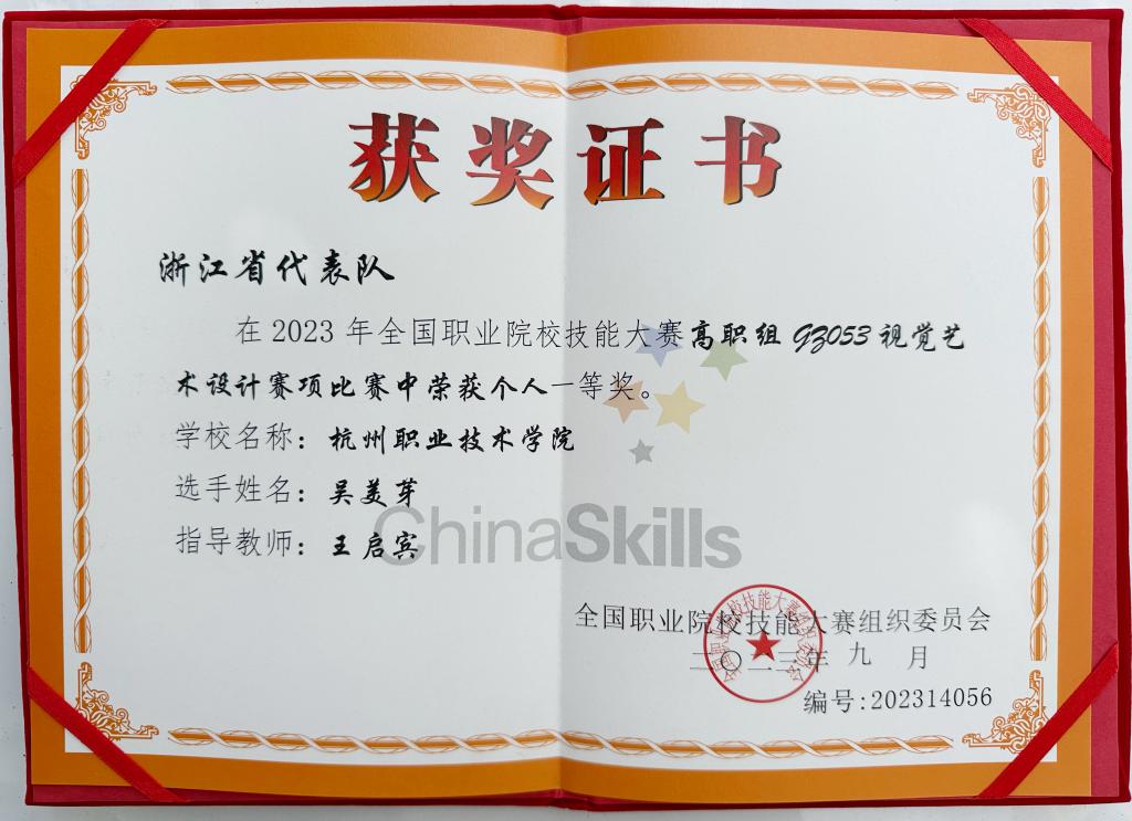 9月26日-9月28日,2023年全国职业院校技能大赛(高职组)“视觉艺术设计”赛项在云南轻纺职业学院成功举办。来自全国27个省、市、自治区的71支参赛队同台竞技,展示技能风采。杭州职业技术学院数字媒体艺术设计专业吴美芽同学荣获一等奖,指导教师王启宾获得“优秀指导教师”的称号。