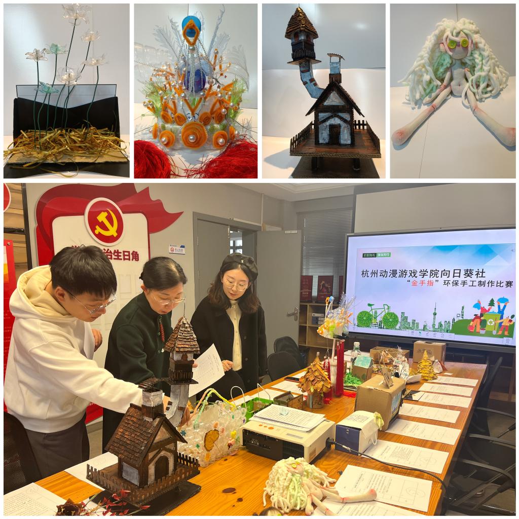 为引导大家树立资源循环再利用的理念,11月30日下午,动漫游戏学院向日葵社在动漫306开展了“杭职有礼•环保先行”之“金手指”手工制作比赛。