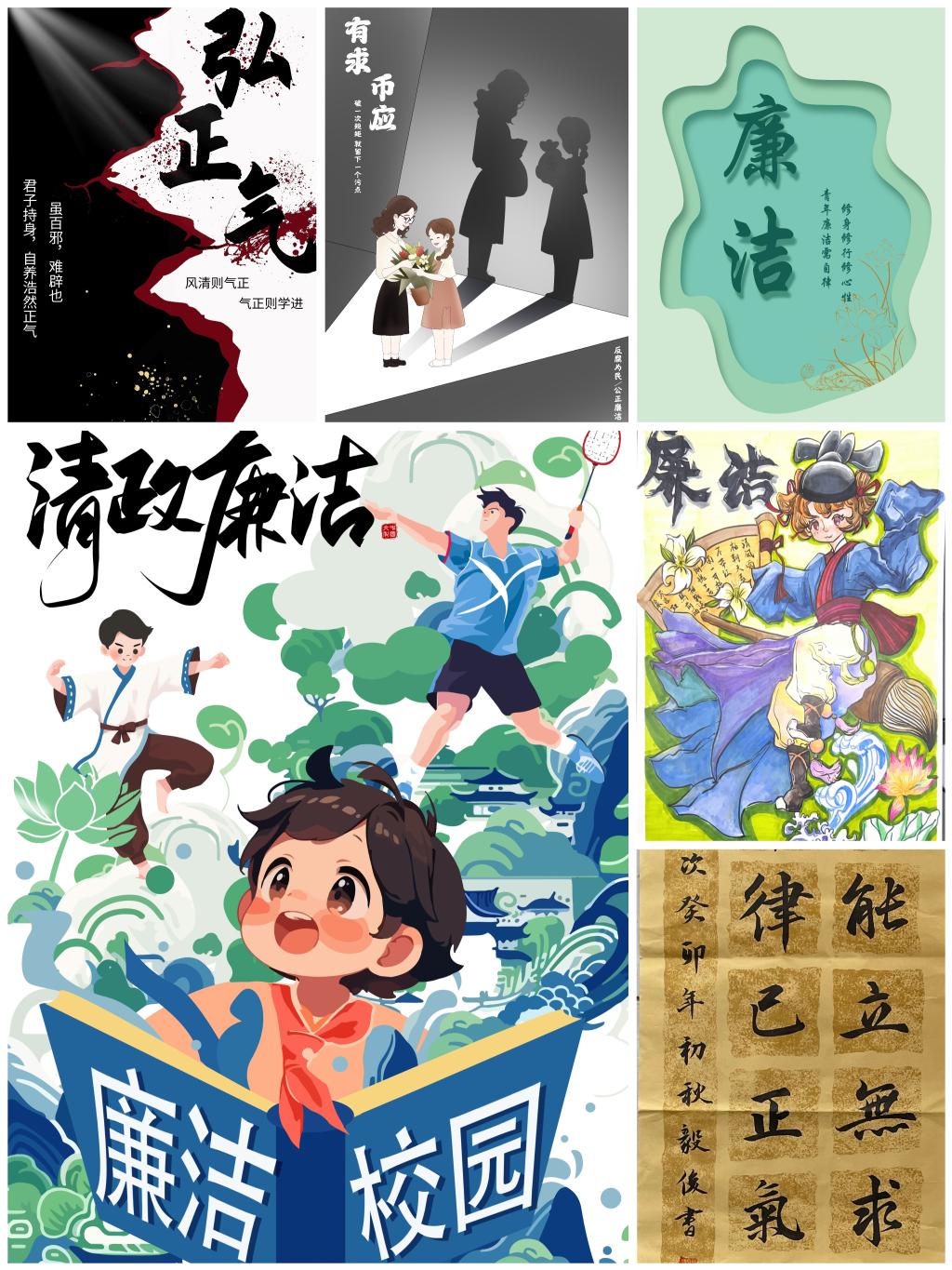 经过同学们丰富多彩的艺术思路创想和主题融合设计过程,截至11月22日,学院收到了来自25个班级,95名同学递交的91组创意作品。作品致力于用艺术形式吸引人,用廉洁文化感染人,用廉洁精神激励人,展示新时代新青年风清气正、向善向上的美丽画卷。最终,经过评审,学院评选出一等奖作品1组,二等奖作品2组,三等奖作品3组。