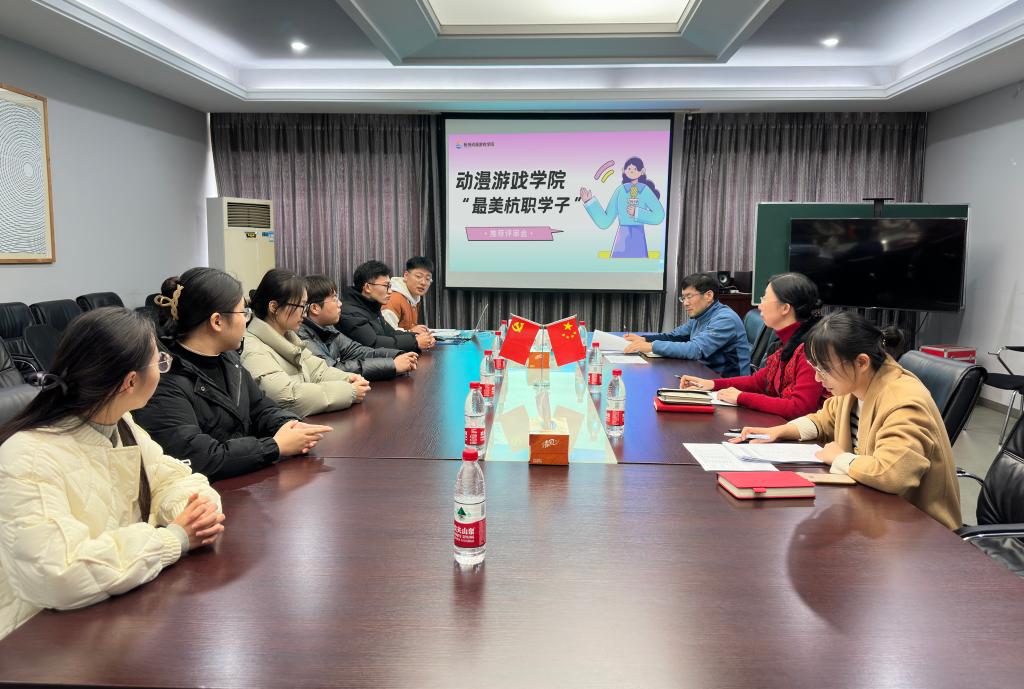 12月13日,动漫游戏学院团总支组织开展第十届“最美杭职学子”推荐评审会。动漫游戏学院党总支书记沈音乐,学院党总支副书记、副院长郭捷,学工办主任许智颖和团总支负责人吴浥铭参与本次评选打分。