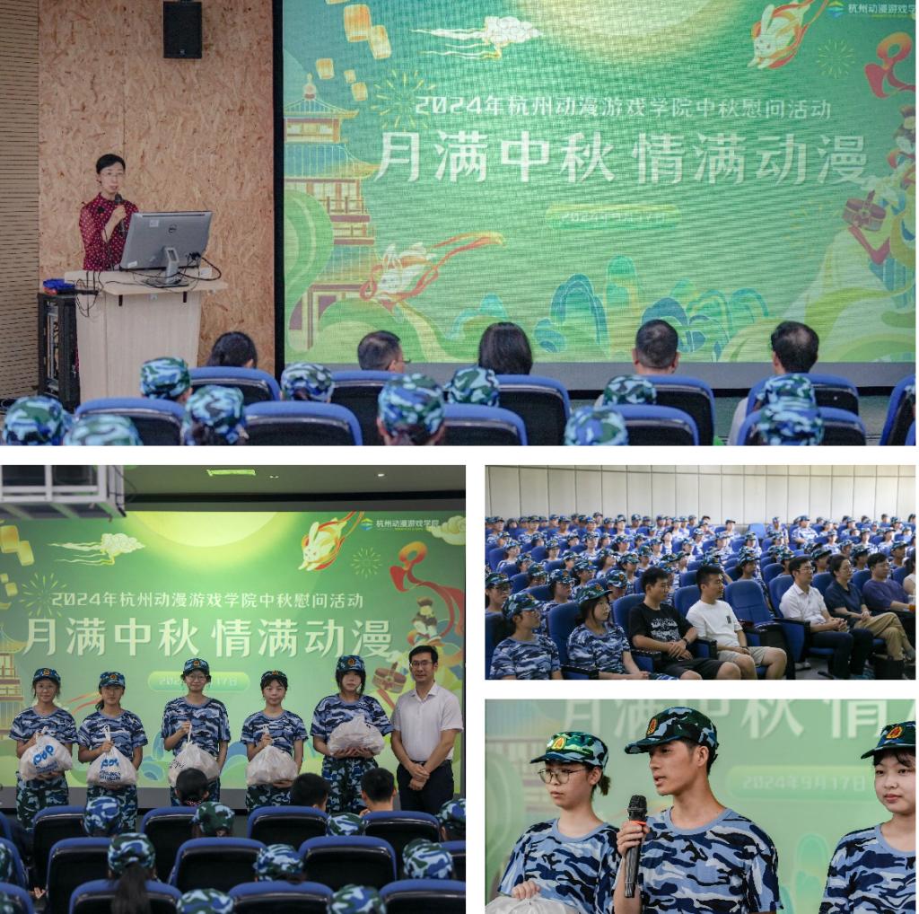 中秋,是一个团圆的节日,它承载着中华民族深厚的文化底蕴和对家的思念。今年中秋节恰逢2024级新生们军训,为了让学生感受到杭州动漫游戏学院大家庭的温暖和关怀,9月17日上午,动漫游戏学院在4201视听讲堂开展了“月满中秋,情满动漫”中秋慰问活动。分院党政领导班子、学工办辅导员、新生班主任、班助和全体2024级新生参加了本次活动。