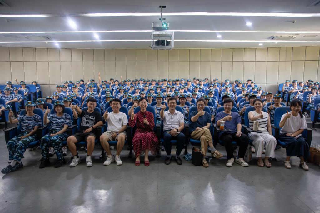 最后,各新生班级代表们向在座的师生们,分享了自己进入大学校园和参加军训的感受和体会。
