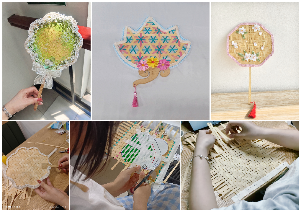 参与的同学们领取材料后,专注投入编织,在穿、插、编、绕间,与千年非遗技艺对话。活动过程中,有人初次尝试略显生疏,却在不断摸索中渐入佳境;有人手法娴熟,精巧构思让扇子雏形初现,大家在经纬交错的编织中,感悟工匠精神,让传统技艺焕发新生。活动结束后,大家纷纷提交制作流程及成品照片,展示各自作品的全貌,开展作品评比。
