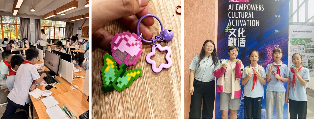 9月22日上午和26日下午,景苑小学四年级和六年级学生走进杭州职业技术大学动漫游戏学院,在动漫专业汪端文、施丽娜和陈柳之芝老师带领下体验AI创意拼豆课程,动漫设计专业金文慧、王洁、胡倬玮、杨双慈、邓雯珍和蔡欣烨同学作为“小助教”全程参与教学辅助工作,深受小朋友喜爱。
