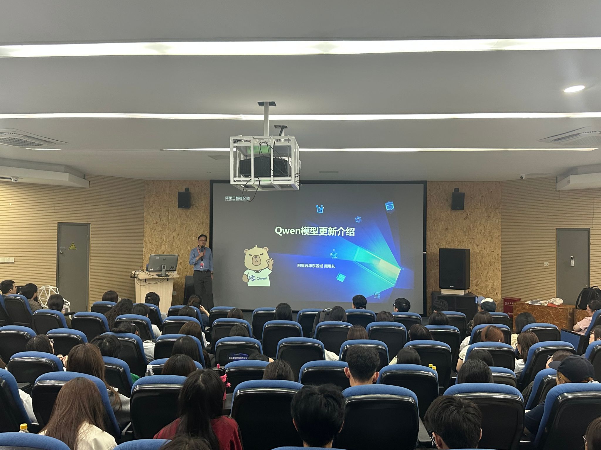10月15日下午,杭州动漫游戏学院举办“阿里云通义大模型系列讲座”,本次讲座聚焦AI技术与动漫创作的深度融合。讲座由动漫设计专业负责人施丽娜主持,学院党总支书记沈音乐、各专业负责人及全体教师共同参与。